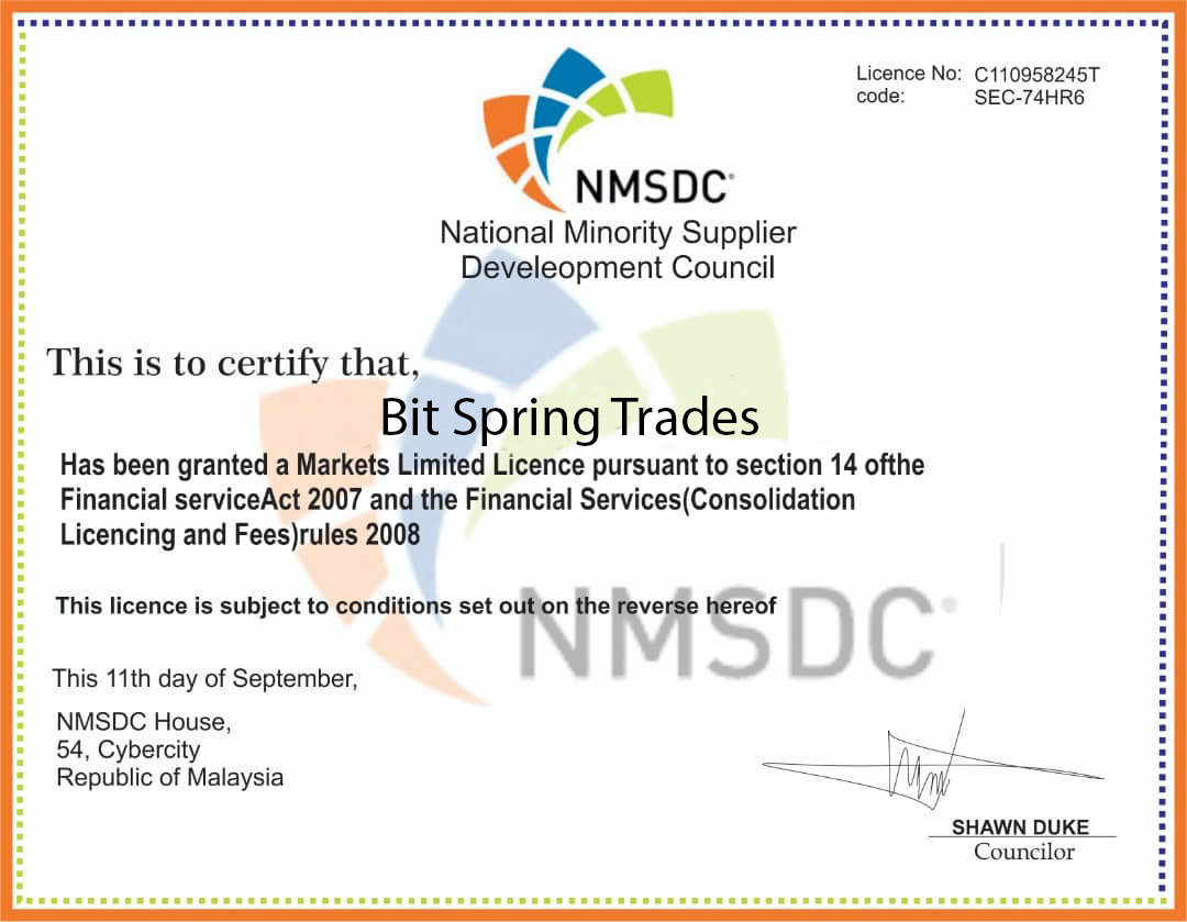 6. Bit Spring Trades has been granted a Uk Markets Limited License under section 14 of the Financial Services Act since 11th August 2000